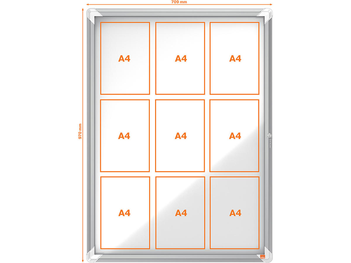 Nobo Premium Plus magnetisk låsbart opslagsskab med hængslet låge 9xA4