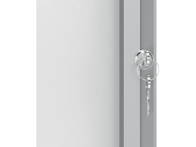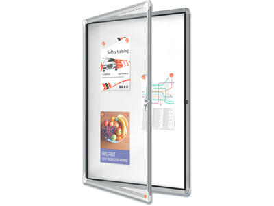 Magnetisk, låsbart opslagsskab med hængslet glaslåge og med sidelås. Komplet med moderne, stilfuld aluminumsramme og vægmonteres gennem hjørnerne. Magnetisk opslagstavle overflade til sikkert at vise dine opslag. Størrelse: 9xA4 ark.