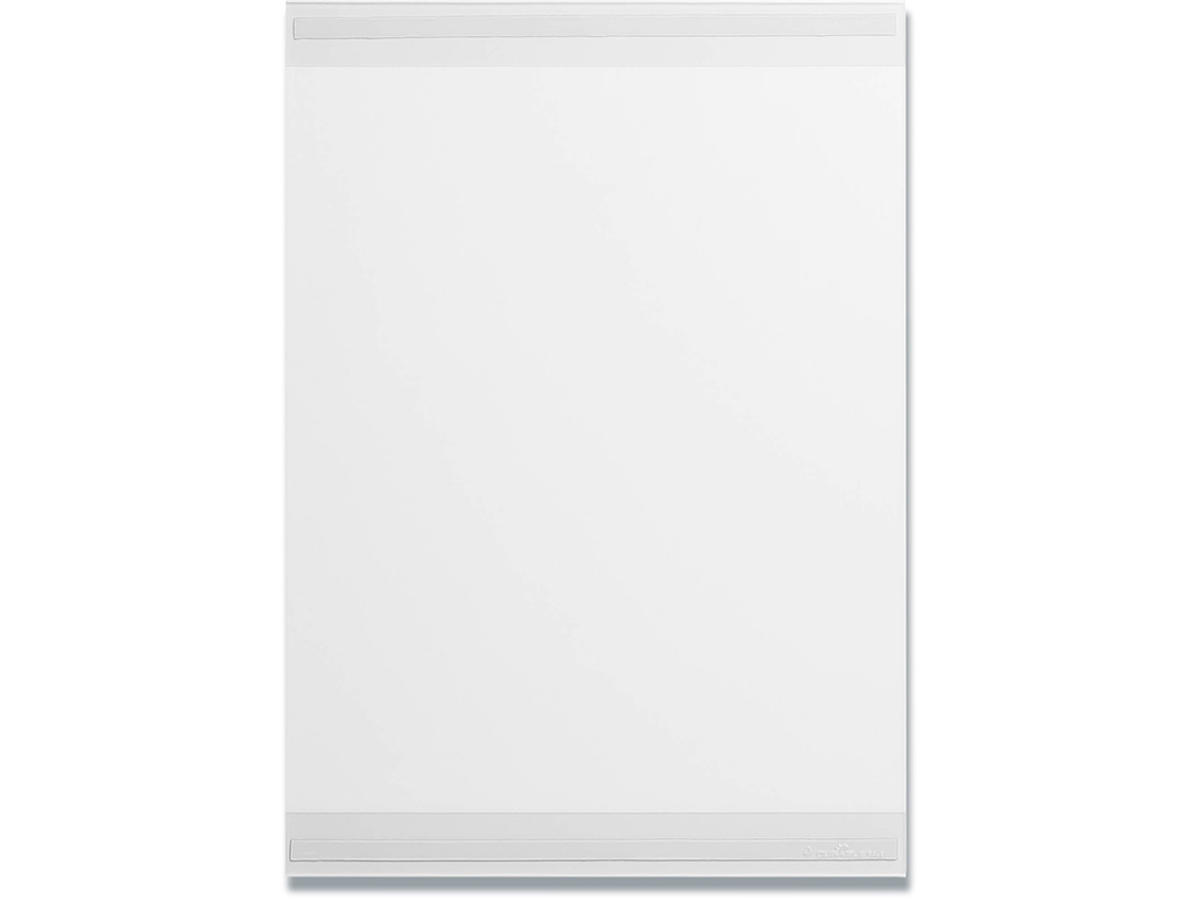 Selvklæbende infolomme hvor folien er fremstillet af mindst 70 % rPET materiale ( genanvendelse efter forbrug). Viser og beskytter indholdet af information på udstillinger, fitnesscentre, kontorer, butikker, klasseværelser og venteværelser. Glasklar forside uden tryk med foldet over- og underkant, der danner en profil, som papiret skubbes ind i fra siden. De to selvklæbende tapestrimler klæber permanent til rene og faste overflader, også dem, der er lidt ujævne. Produktet er interessant ud fra et bæredygtighedsperspektiv på flere måder. Designet uden bagside betyder, at der bruges mindre rPET-plast, og lommerne leveres i en 100 % genanvendt PE-plastpose. Tapestrimlerne kan adskilles fra lommen, så plasten kan kildesorteres og genbruges, når infolommen bortskaffes.