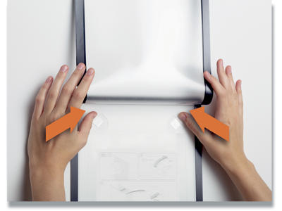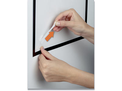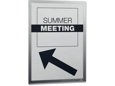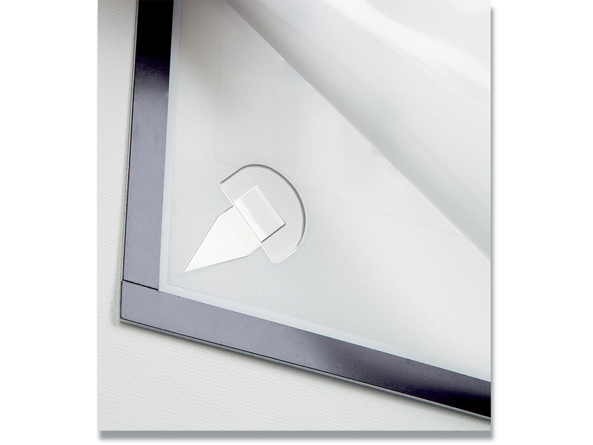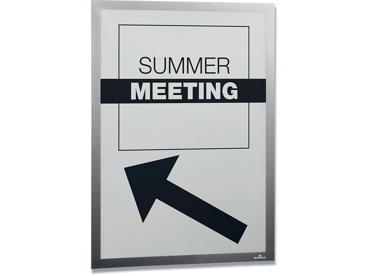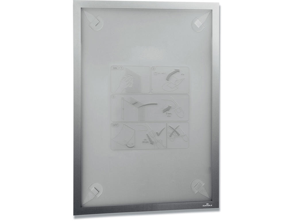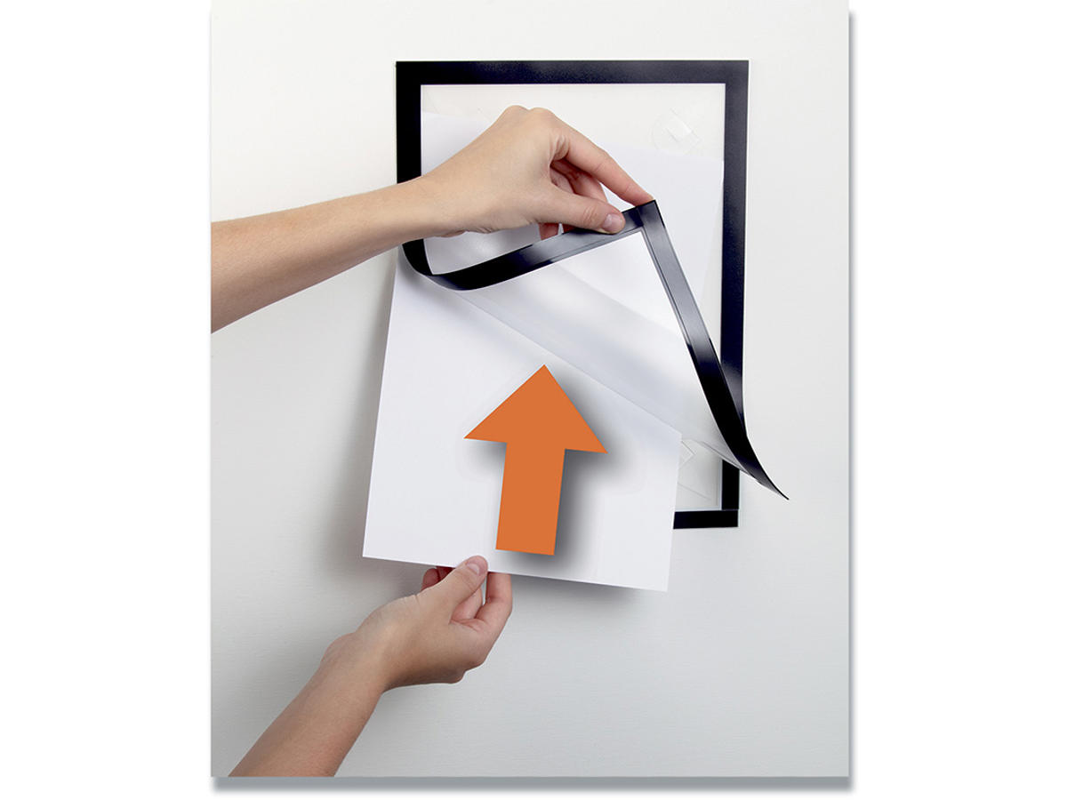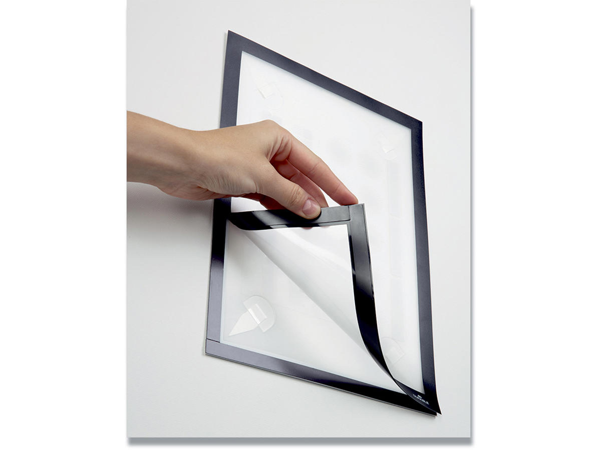 Den flytbare inforamme DURAFRAME® WALLPAPER til informationer på følsomme overflader. Ideel til meddelelser på tapet, træ og plastoverflader. Viser oplysninger på en professionel og elegant måde. Hurtigt at installere og udskifte indholdet takket være den oplukkelige magnetiske ramme. Nemt at opsætte på tapet, træ og de fleste plastoverflader med klæbende strips. DURAFRAME®WALLPAPER kan fjernes igen og efterlader ingen klæberester eller beskadiger overfladen. Anvendelsesområder: at vise og præsenterer informationer i A4 format, f.eks. skilte, kampagnetilbud, reklamer, åbningstider. Inklusiv udskiftningssæt med 4 klæbende strips. Til anvendelse i stående eller liggende format.