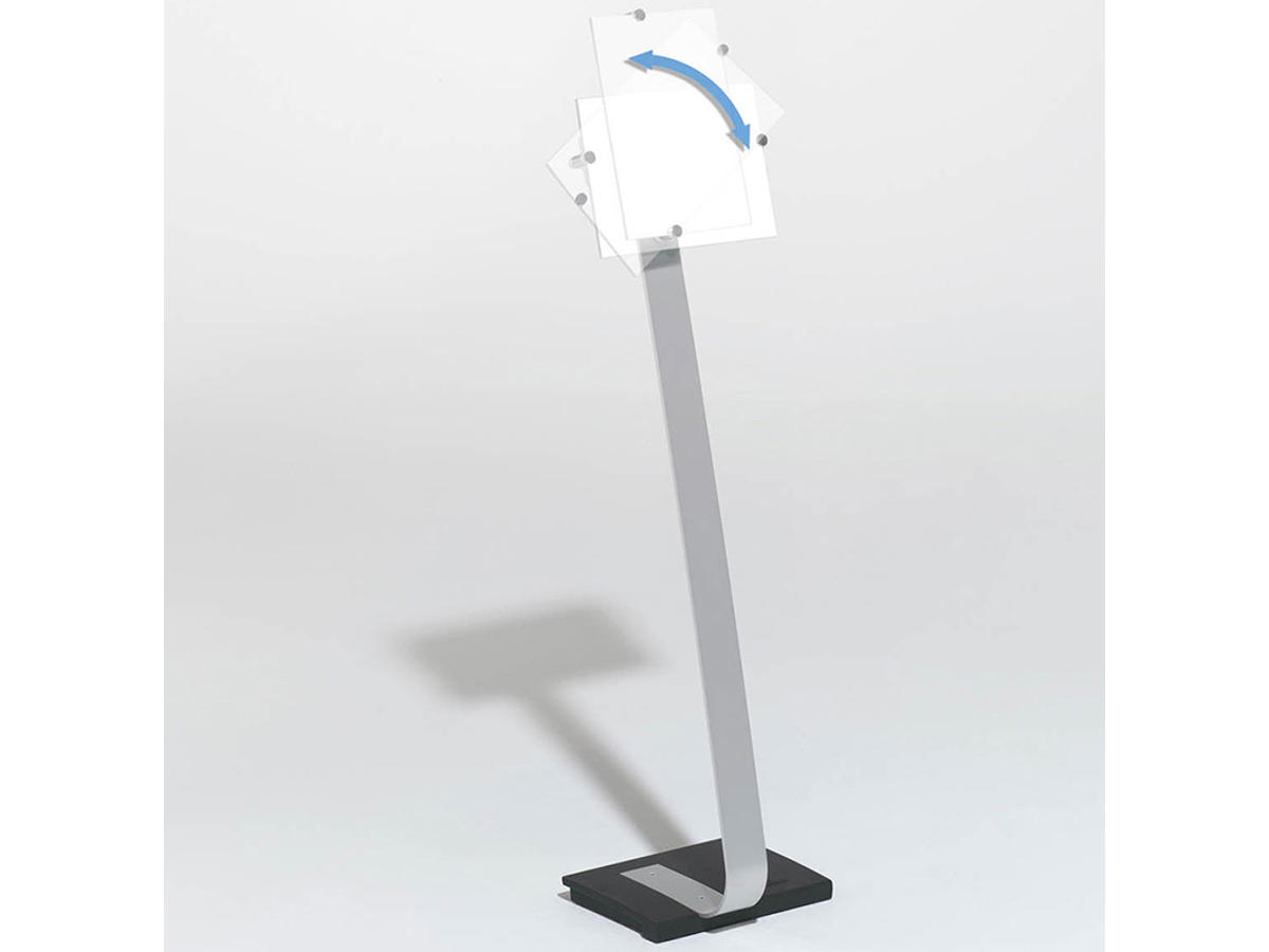 CRYSTAL SIGN gulvskilt i elegant design som passer til placering i lobbyer, restauranter, udstillinger m.m. Skiltet er i A4-format af klar akryl og kan nem bruges vertikalt eller horisontalt. Dekorative sølvfarvede skruer, der holder skiltet sammen. Skiltet kan monteres i forskellige højder og synsvinklen kan også justeres til 10 grader afhængig af skiltet er højt op eller længere nede foden. Stabil fod med gummi fødder. Mål: skilt i højformat højde 1,18m/1,11m, skilt i tværformat højde 1,13m/1,06m. Leveres med halvgennemsigtigt indstiksark og ekstra indstik kan bestilles separat (Durable art nr DU4835-19). Design selv en personlig designet indstiksetiket til skiltet med gratis skabelon på Duraprint - Klik her