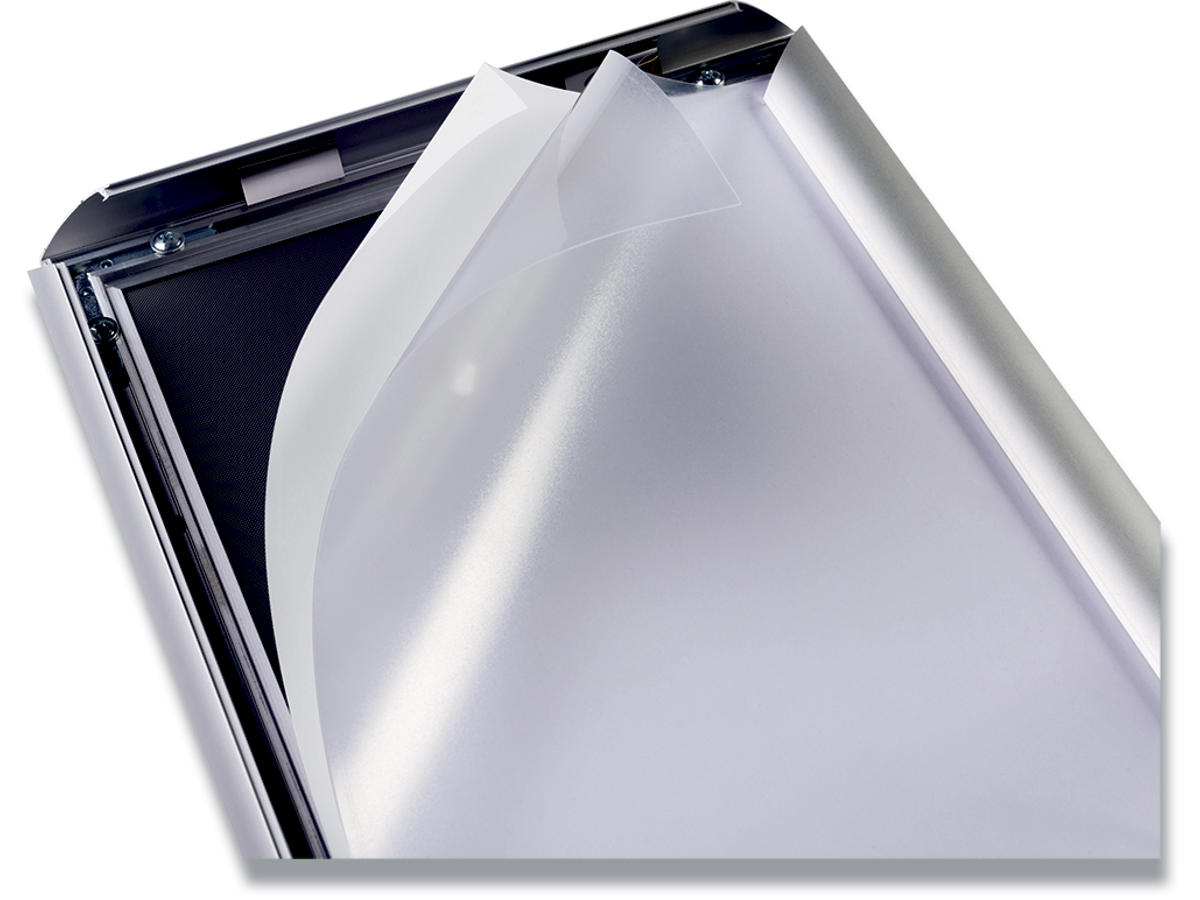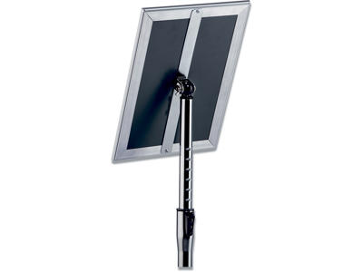 • Hurtigt monteret gulvskilt med robust aluminiums klikramme i DIN A3 format, der kan foldes sammen, sølv-anodiseret