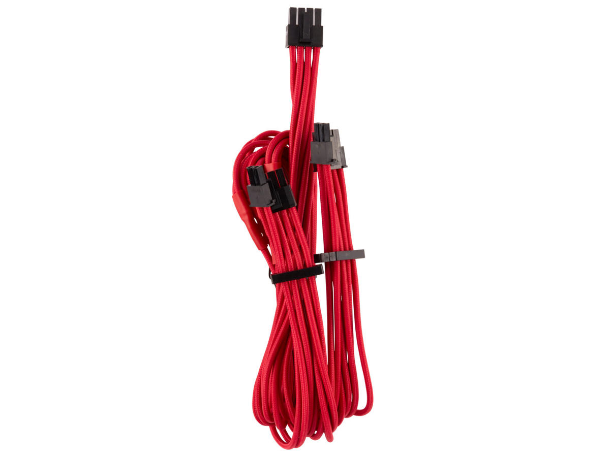 • The CORSAIR Premium Individually Sleeved PCIe Type 4 Gen 4 cables combine premium paracord sleeving and a heatshrink-less finish with wide compatibility for CORSAIR Type 4 Power Supplies.