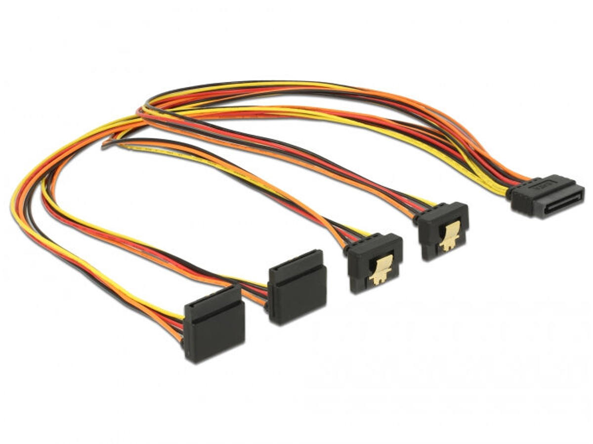 DeLOCK 60155. Stik 1: 4 x SATA 15-pin, Stik 2: SATA 15-stik, Kabellængde: 0,5 m. Pakketype: Polybag