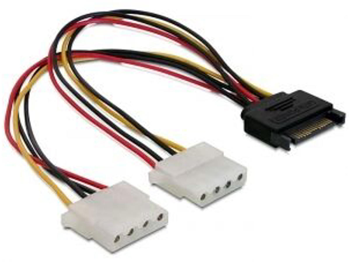 DeLOCK SATA 15pin > 2x 4pin Molex female 20cm. Stik 1 køn: Hanstik, Stik 2 køn: Hunstik, Produktfarve: Flerfarvet