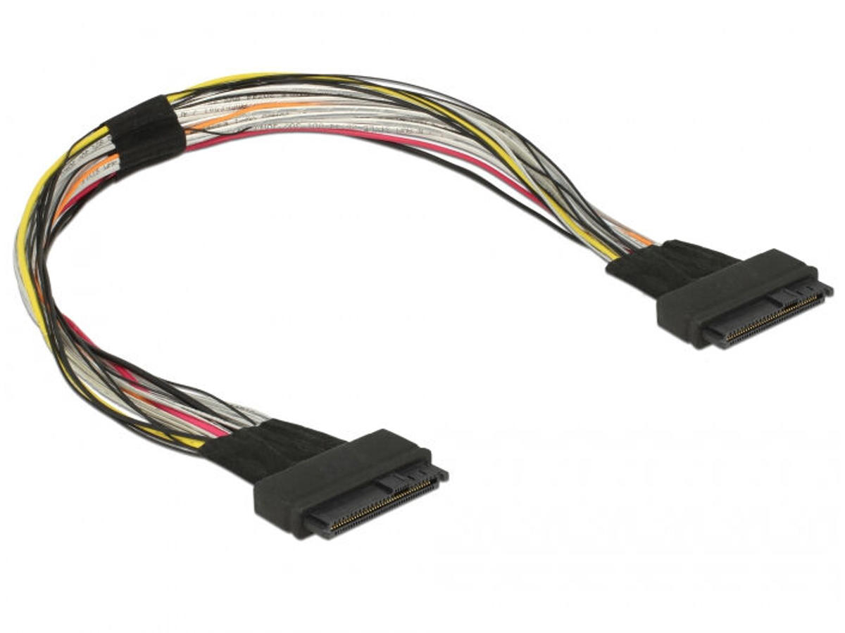 The cable by Delock is used to connect e.g. an SSD with U.2 interface to a PCIe NVMe adapter with U.2 SFF-8639 port.