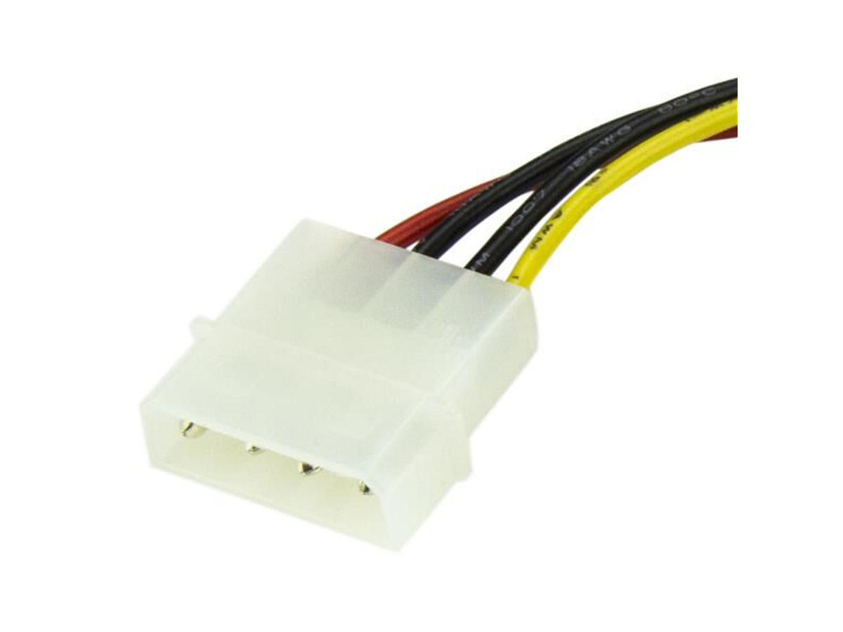 StarTech.com SATAPOWADAP. Stik 1: Molex (4-pin), Stik 2: SATA 15-stik, Kabellængde: 0,152 m. Compliance-certifikater: RoHS, Certificering: REACH, CE. Vægt: 8 g. Pakkebredde: 90 mm, Pakkedybde: 120 mm, Pakkehøjde: 10 mm. Materiale for kapper: Polyvinylchlorid (PVC)