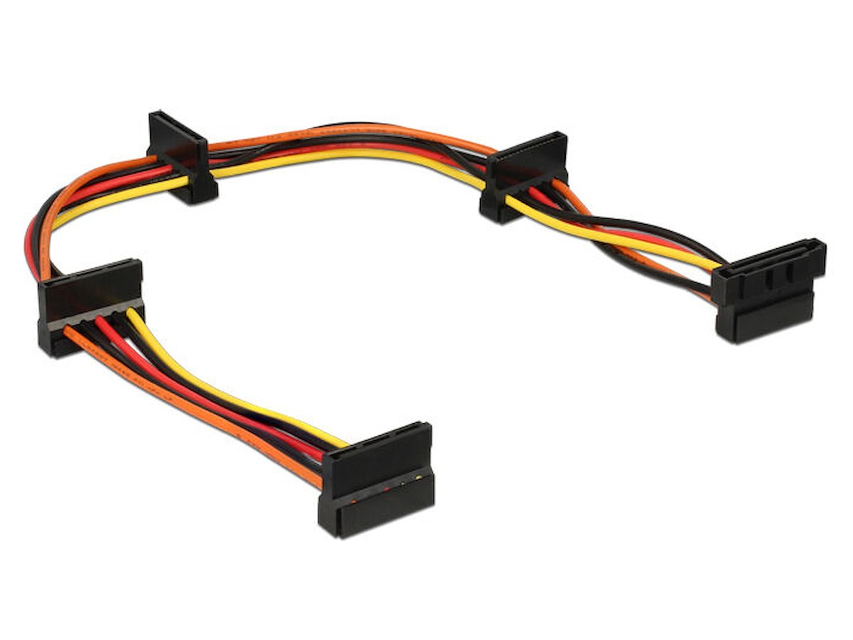 This power cable can be connected to 4 SATA devices and supplies power via one SATA 15 pin port of a power supply.