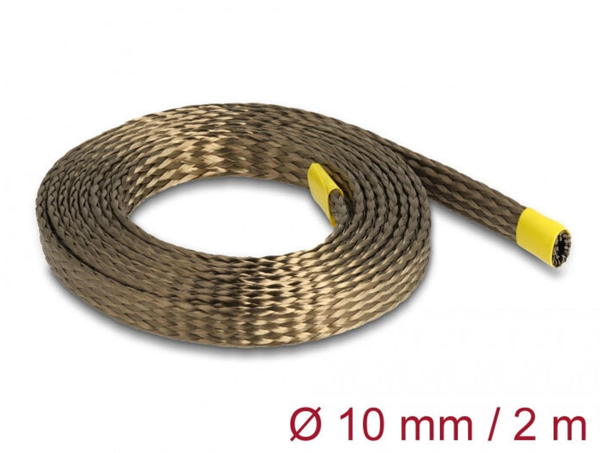 This braided sleeve by Delock is made of special basalt fibers and has an excellent temperature resistance, tensile strength, and corrosion resistance to protect sensitive cables, tubes and wires.