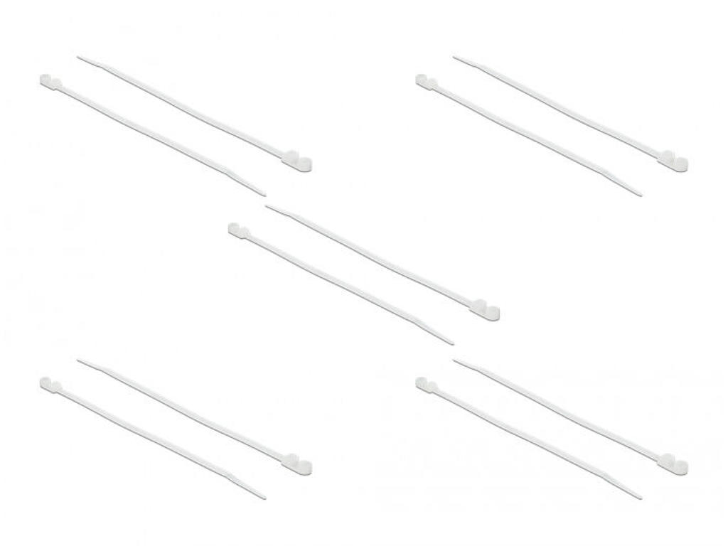 These cable ties by Delock can be used for a space-saving bundling of single cables, wires and tubes.Eyelet for fasteningThe eyelet allows the fixing or hanging of the cable bundle by a screw e.g. on a wall.Brilliant resistanceThe cable ties have a good resistance to high temperatures and are characterized by their tensile strength.