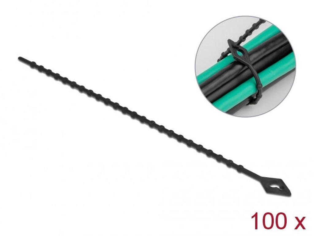 These cable ties by Delock can be used for a space-saving bundling of single cables, wires and tubes.Special fastenerThe fastener ensures a secure and firm hold of the cable bundles.ReusableMultiple opening and closing is possible.Brilliant resistanceThe Lightning ties have a good resistance to high temperatures and are characterized by their tensile strength.