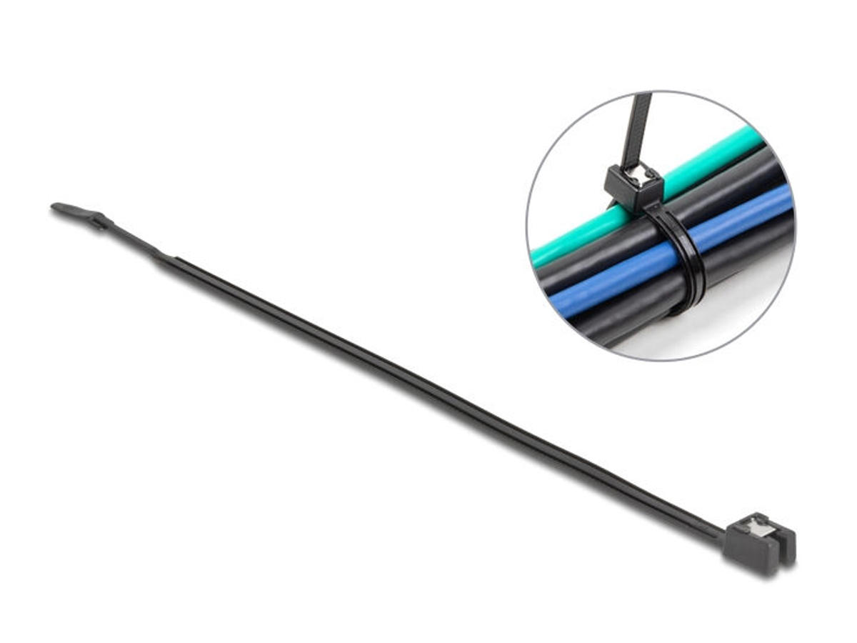 DeLOCK 19470. Type: Parallel kabelindføring, Materiale: Plast, Produktfarve: Sort. Længde: 370 mm, Bredde: 4,8 mm. Antal pr. pakke: 50 stk