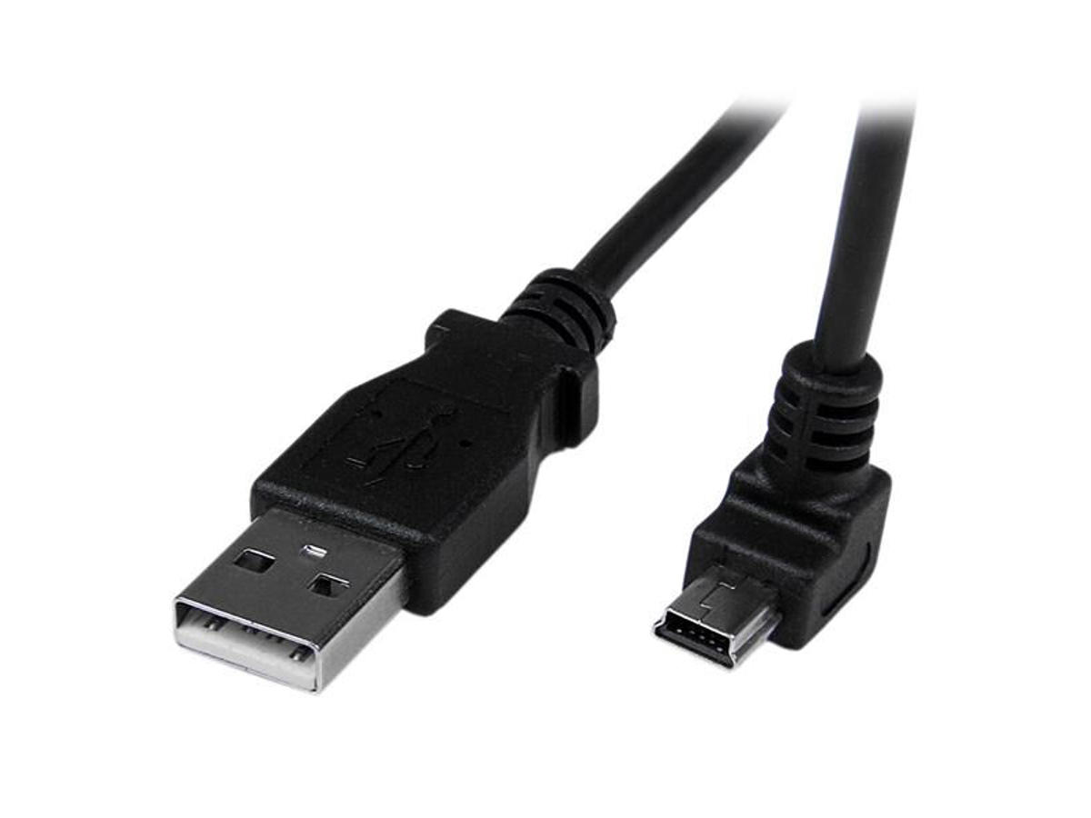 The down-angled Mini USB connector allows you to access your Mini USB devices, while keeping the cable out of the way, and stress away from the port.