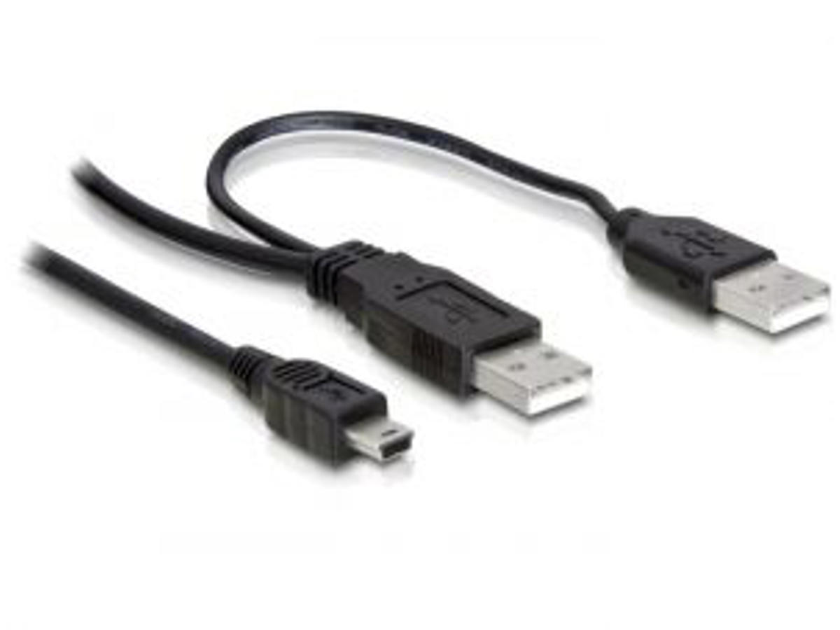 DeLOCK 2x USB2.0-A male / USB mini 5-pin USB-kabel 1 m USB A Mini-USB B Sort