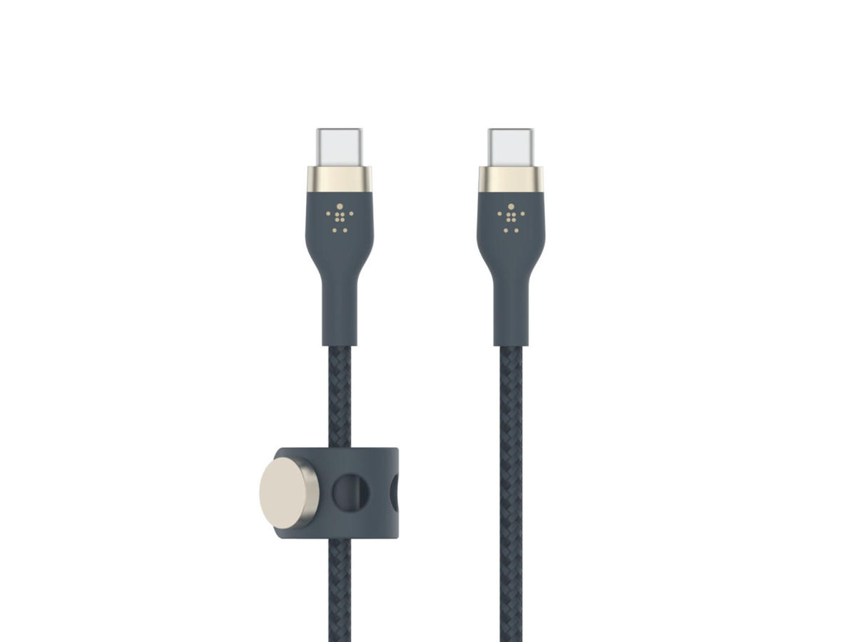 Our BOOST↑CHARGE™ PRO Flex braided silicone cables combine ultra-flexibility with long-lasting durability. In fact, they are up to 30X more durable* than ordinary cables and are built to resist tangling and fraying. This USB-C to USB-C cable is USB-C PD compatible, supporting fast charging speeds of 0-50% in 26 mins**. Easily store and mount it anywhere with its magnetic cable management system. Comes in three lengths and four stylish colors.