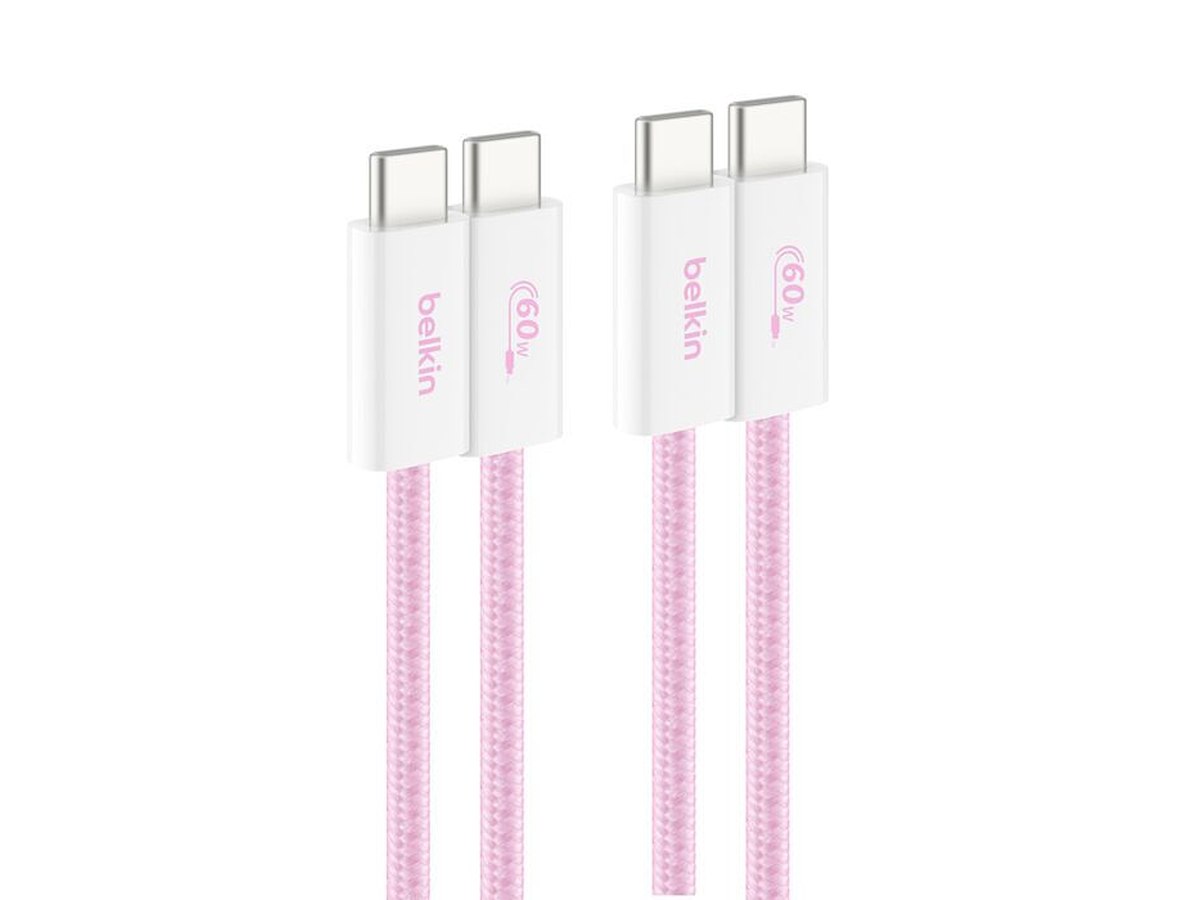 Belkin BoostCharge. Stik 1: USB C, Stik 2: USB C, USB version: USB 2.0, Produktfarve: Lyserød