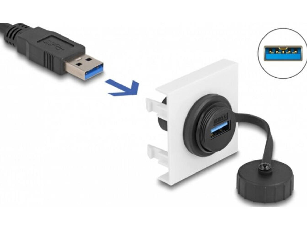 This Easy 45 module by Delock is designed to provide a USB Type-A female port. The simple snap-in mechanism ensures that the cover is firmly in place and can be easily and toolless changed if necessary.