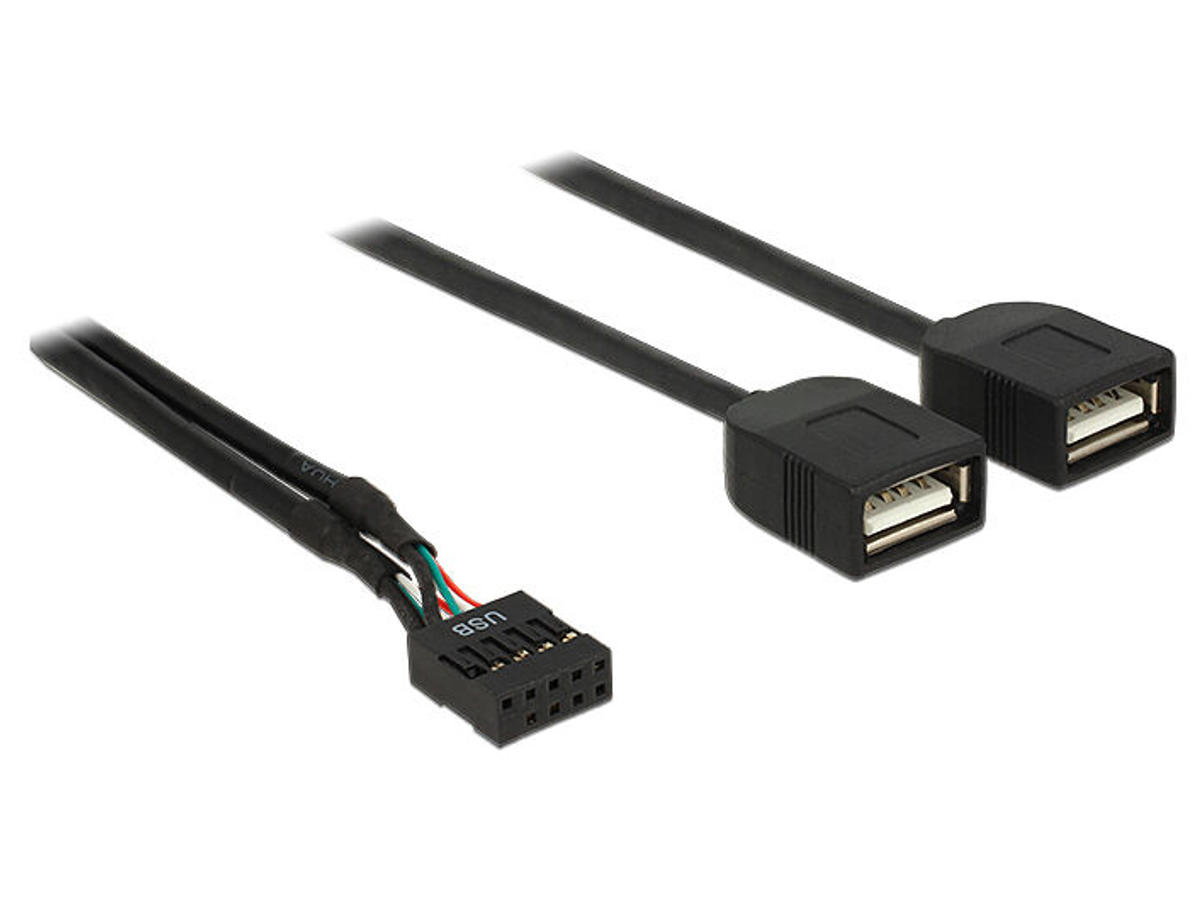 DeLOCK 83823. Kabellængde: 0,4 m. Stik 2: 2 x USB A, USB version: USB 2.0, Stik køn: Hunstik/Hunstik, Maksimal dataoverførselshastighed: 0,48 Gbit/sek., Produktfarve: Sort