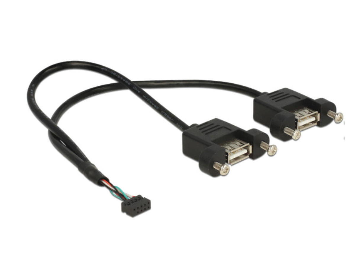 DeLOCK 84832. Kabellængde: 0,25 m. Stik 2: 2 x USB A, USB version: USB 2.0, Stik køn: Hunstik/Hunstik, Maksimal dataoverførselshastighed: 0,48 Gbit/sek., Stikforbindelse kontakter plettering: Guld, Produktfarve: Sort