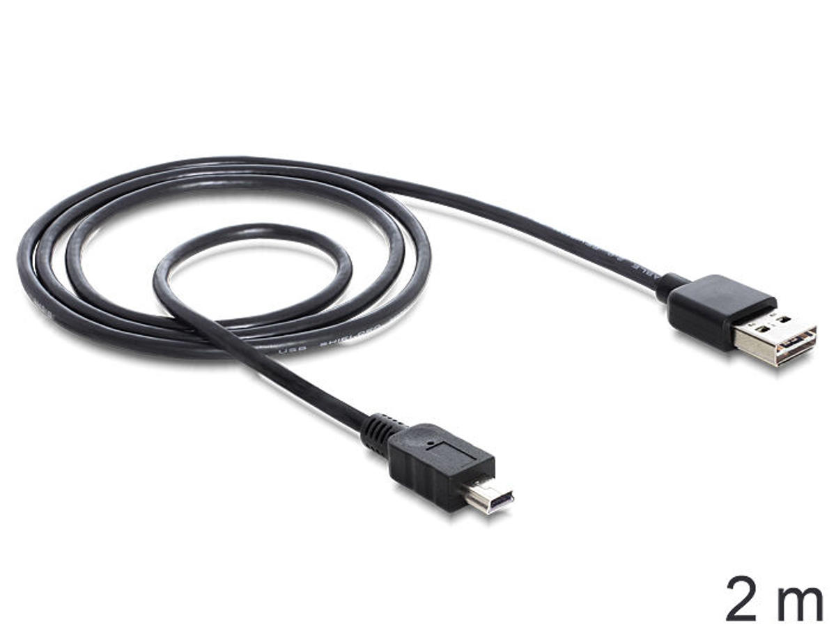 DeLOCK 85554. Kabellængde: 2 m. Stik 1: USB A, Stik 2: Mini-USB B, USB version: USB 2.0, Maksimal dataoverførselshastighed: 0,48 Gbit/sek., Stikforbindelse kontakter plettering: Guld, Produktfarve: Sort
