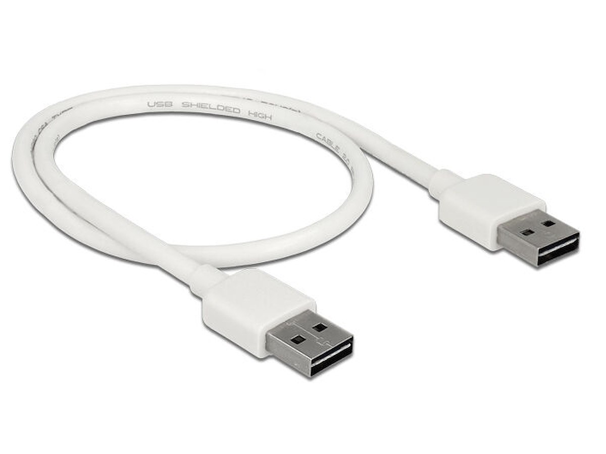 DeLOCK 85192. Kabellængde: 0,5 m. Stik 1: USB A, Stik 2: USB A, USB version: USB 2.0, Stik køn: Hanstik/Hanstik, Maksimal dataoverførselshastighed: 0,48 Gbit/sek., Stikforbindelse kontakter plettering: Guld, Produktfarve: Hvid