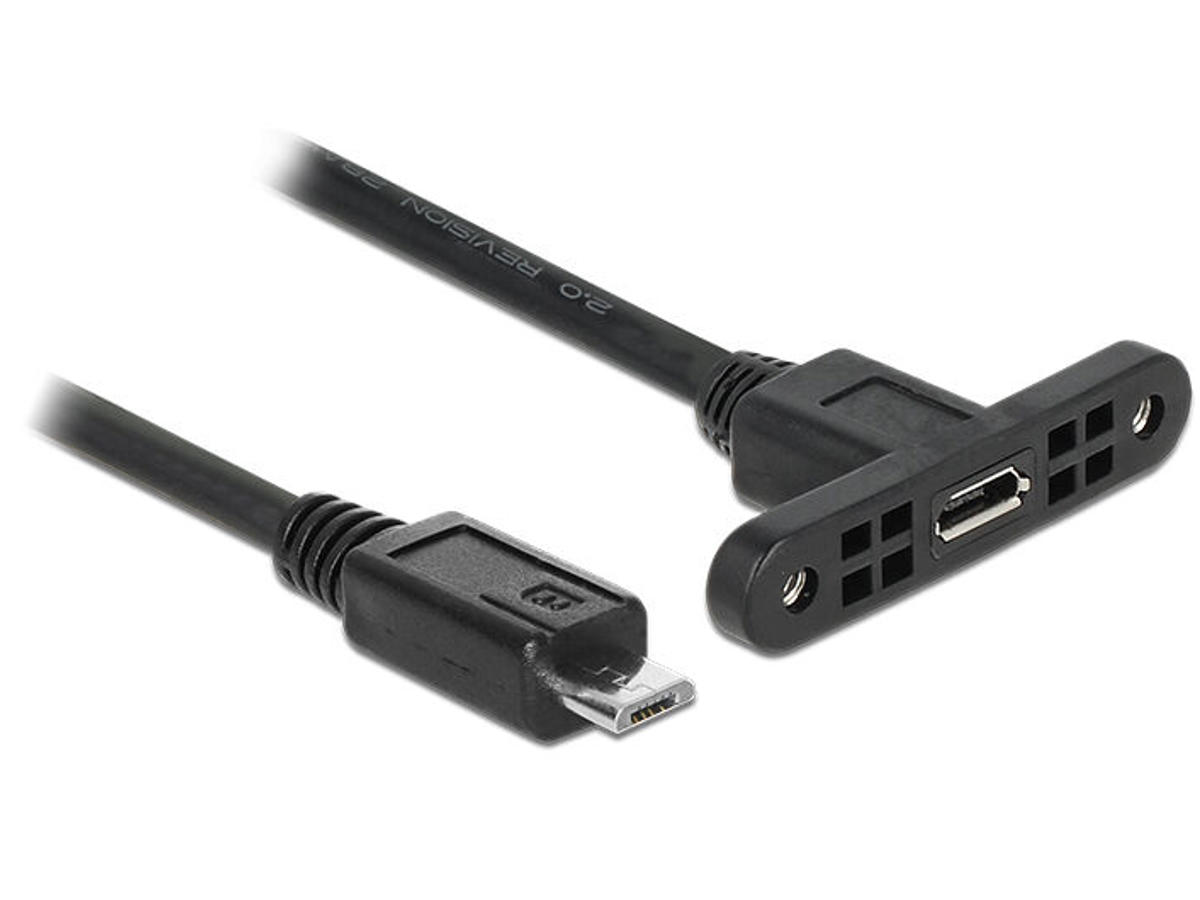 DeLOCK 1m, 2xUSB2.0 Micro-B. Kabellængde: 1 m. Stik 1: Micro-USB B, Stik 2: Micro-USB B, USB version: USB 2.0, Stik køn: Hanstik/Hunstik, Maksimal dataoverførselshastighed: 0,48 Gbit/sek., Produktfarve: Sort