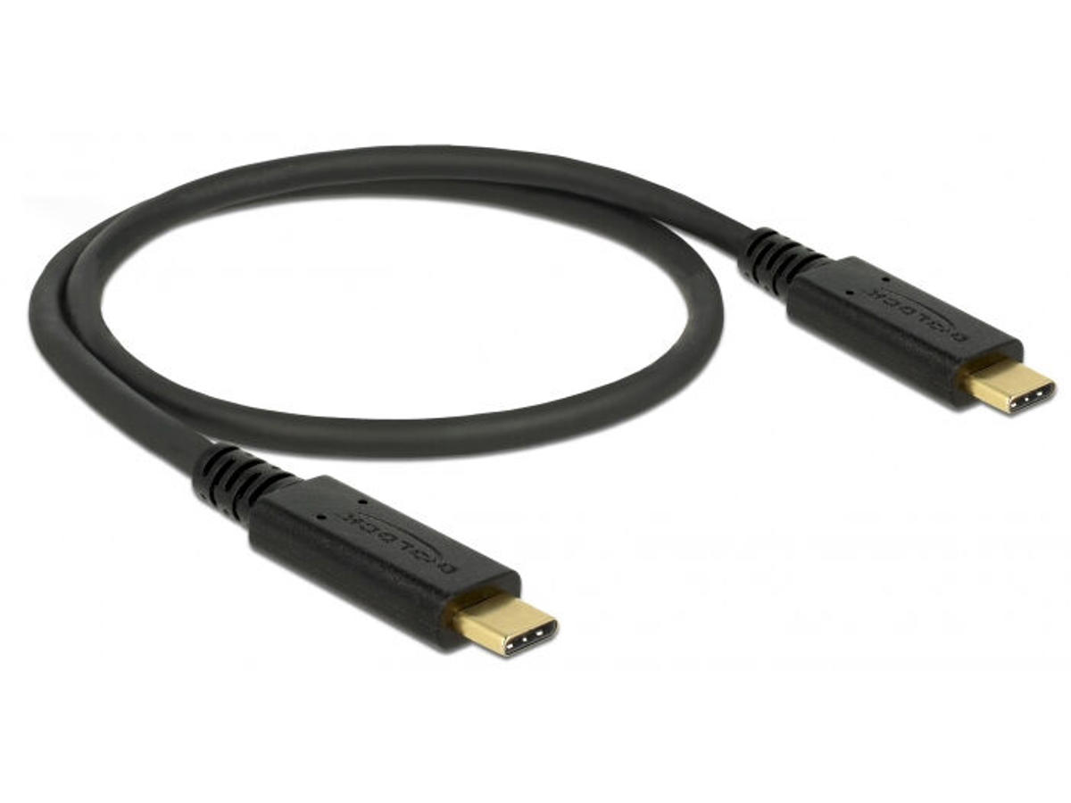 DeLOCK 83043. Kabellængde: 0,5 m. Stik 1: USB C, Stik 2: USB C, USB version: USB 2.0, Maksimal dataoverførselshastighed: 0,48 Gbit/sek., Produktfarve: Sort