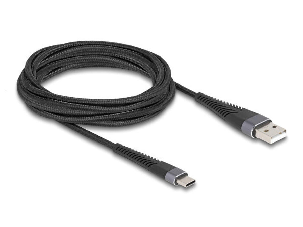 DeLOCK 81123. Kabellængde: 3 m. Stik 1: USB A, Stik 2: USB C, USB version: USB 2.0, Maksimal dataoverførselshastighed: 0,48 Gbit/sek., Produktfarve: Sort
