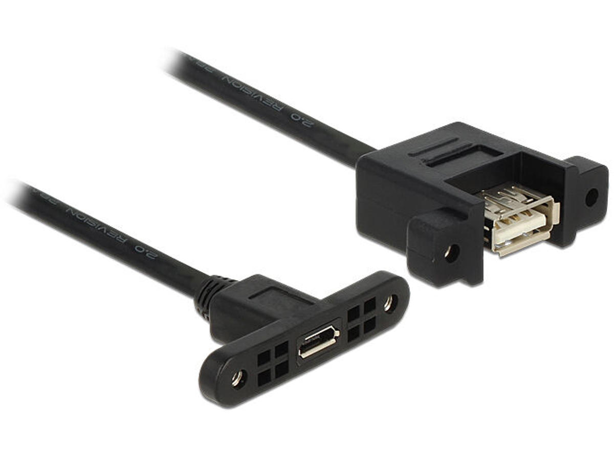 DeLOCK USB 2.0 Micro-B/A, 0.25m. Kabellængde: 0,25 m. Stik 1: Micro-USB B, Stik 2: USB A, USB version: USB 2.0, Stik køn: Hunstik/Hunstik, Maksimal dataoverførselshastighed: 0,48 Gbit/sek., Produktfarve: Sort