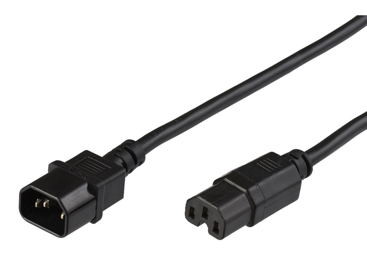 Microconnect PE011420. Kabellængde: 2 m, Stik 1: C14 forbinder, Stik 2: C15 forbinder, Kabeltype: H05V2V2-F. Indgangsspænding: 250 V, Indgangsstrøm: 10 A