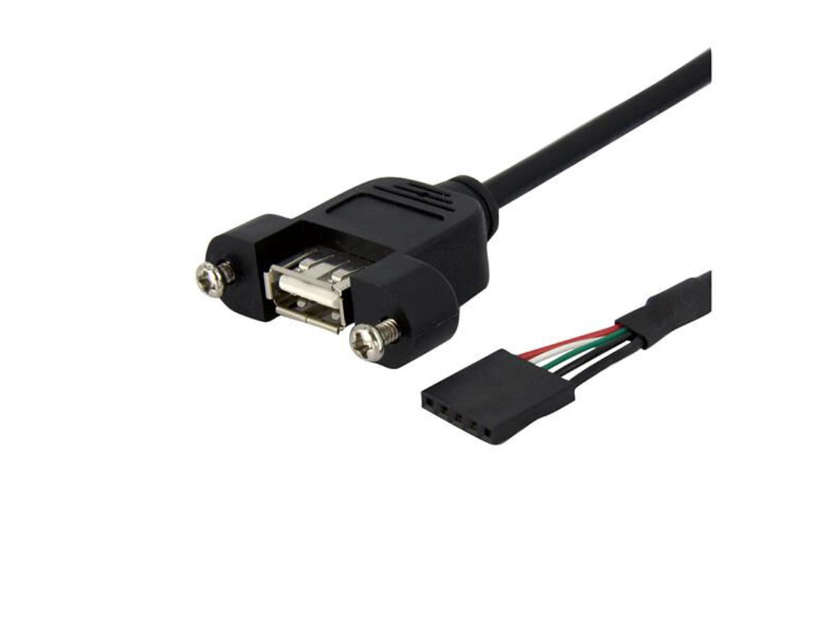StarTech.com 30 cm Inbouwpaneel USB Kabel - USB A naar Moederbord Aansluitkabel F/F. Kabellængde: 0,3 m. Stik 1: USB A, Stik køn: Hunstik/Hunstik, Produktfarve: Sort
