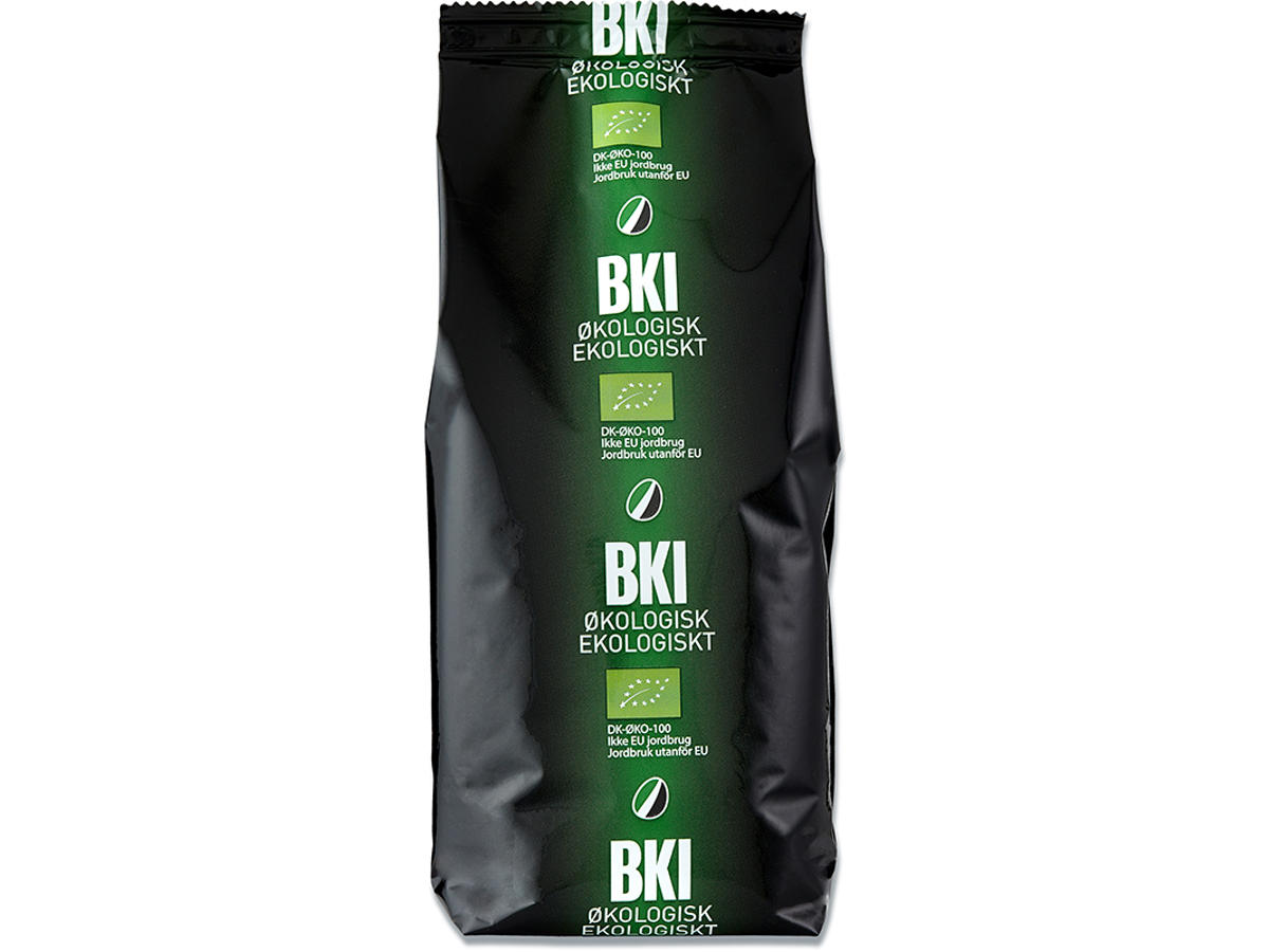 Prisen er for 16 poser á 500 gram. BKI Økologisk er 100% mellemristet Arabica fra Chiapaz i det sydlige Mexico. Det er en god, rund kop kaffe med meget kraftig syre og medium fyldig smag. Vores garanti for økologisk oprindelse starter hos indianerne i Chiapas i det sydlige Mexico, hvor vi omhyggeligt har udvalgt de kaffefarme, som lever op til vore kvalitetskrav. Disse kaffefarme kontolleres af det mexicanske landbrugs-ministerium, som udsteder et certifikat på hvert enkelt vareparti i overensstemmelse med kravene fra IFAOM (International Federation And Organic Agriculture). Når vi herefter modtager de økologiske kaffebønner, sker der videre bearbejdning under løbende kontrol fra Veterinær- og Levnedsmiddelkontrollen. Derfor må BKI anvende betegnelsen “Statskontrolleret Økologisk”.