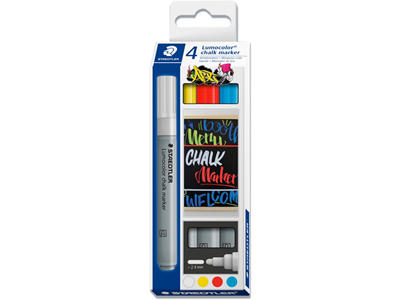 Kalk marker, 2.4 mm, Rød, gul, blå, hvid, 4 stk, Staedtler Lumocolor Chalk 344