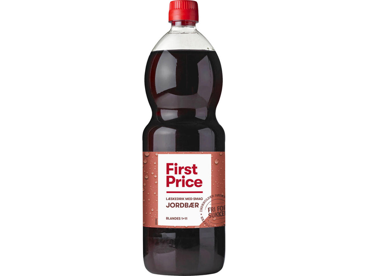Blandingsforhold: 1 til 12. Ingredienser: Vand, 7,7% druesaft fra koncentrat, syre (E296), sødestoffer (E952, E951, E954), 0,3% jordbærsaft fra koncentrat, surhedsregulerende middel (E331), sort gulerodskonsentrat, konserveringsmidler (E202, E211), jordbæraroma, farvestof (E150d). Indeholder aspartam