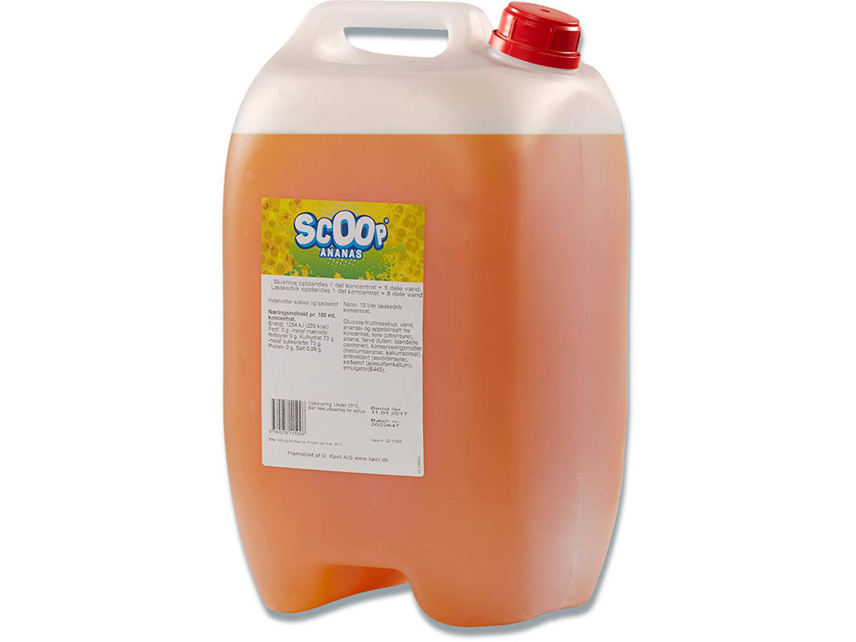 Scoop koncentat lagerføres i en række populære og velsmagende varianter i flotte farver. Alle Scoop varianter er fri for Azo-farvestoffer og kan defor med god samvittighed serveres til børn. Scoop koncentraterne leveres i praktiske 10 liters dunke. Der bliver 60 liter slushice af en dunk (opblandet 1+5) og 90 liter læskedrik (opblandet 1+8).