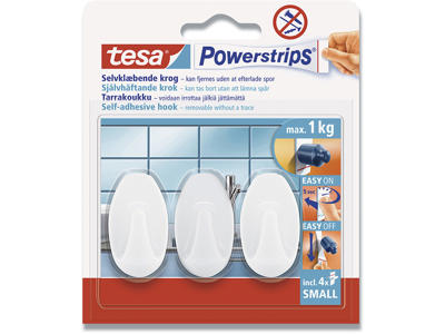 Klæbekroge, Small, Ovale, 3 kroge, 4 strips, Tesa Powerstrips Klæbekroge, Small, Ovale, 3 kroge, 4 strips, Tesa Powerstrips