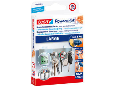 Klæbepuder, 2x5 cm, Op til 2 kg, 10 stk, Tesa Powerstrips® Large 58000 Klæbepuder, 2x5 cm, Op til 2 kg, 10 stk, Tesa Powerstrips® Large 58000