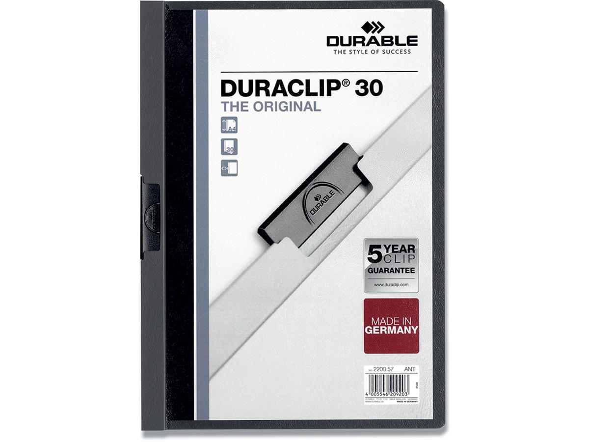 Klemmappe, 30 ark, Antracitgrå, Transparent forside, Durable DURACLIP 30