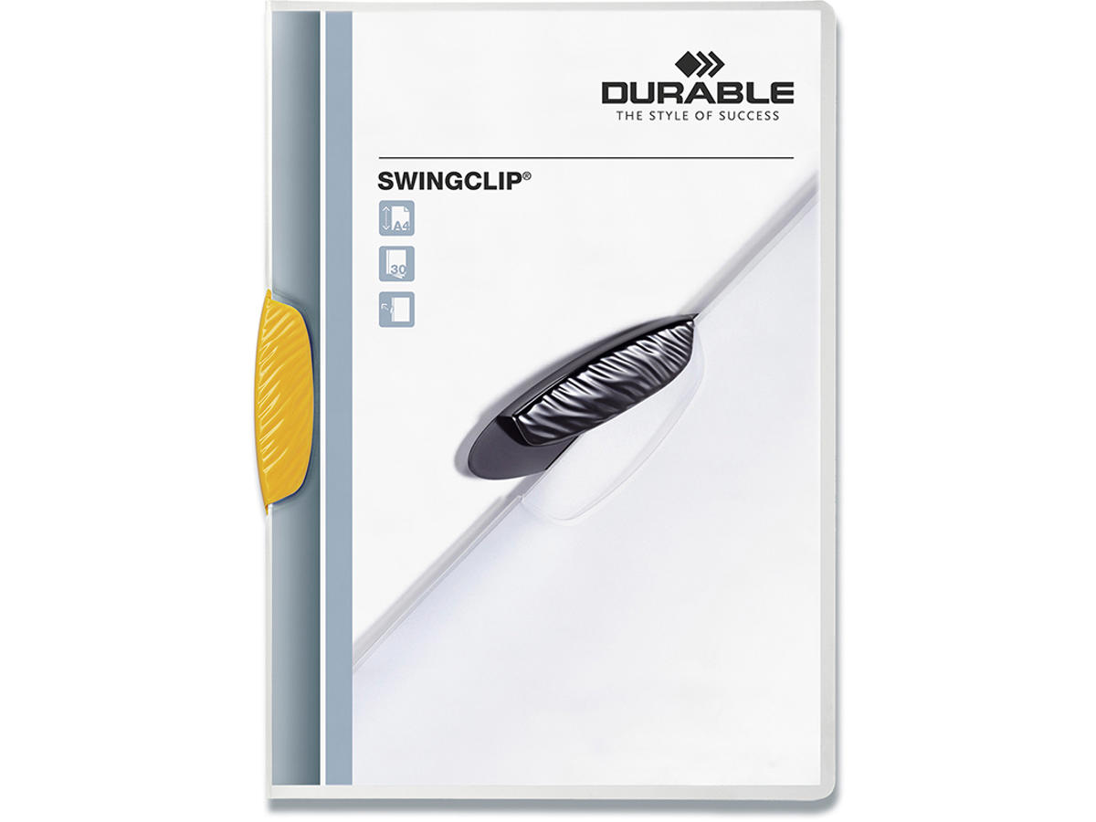 Klemmappe, 30 ark, Transparent med gul clip, Transparent forside, Durable SWINGCLIP 30