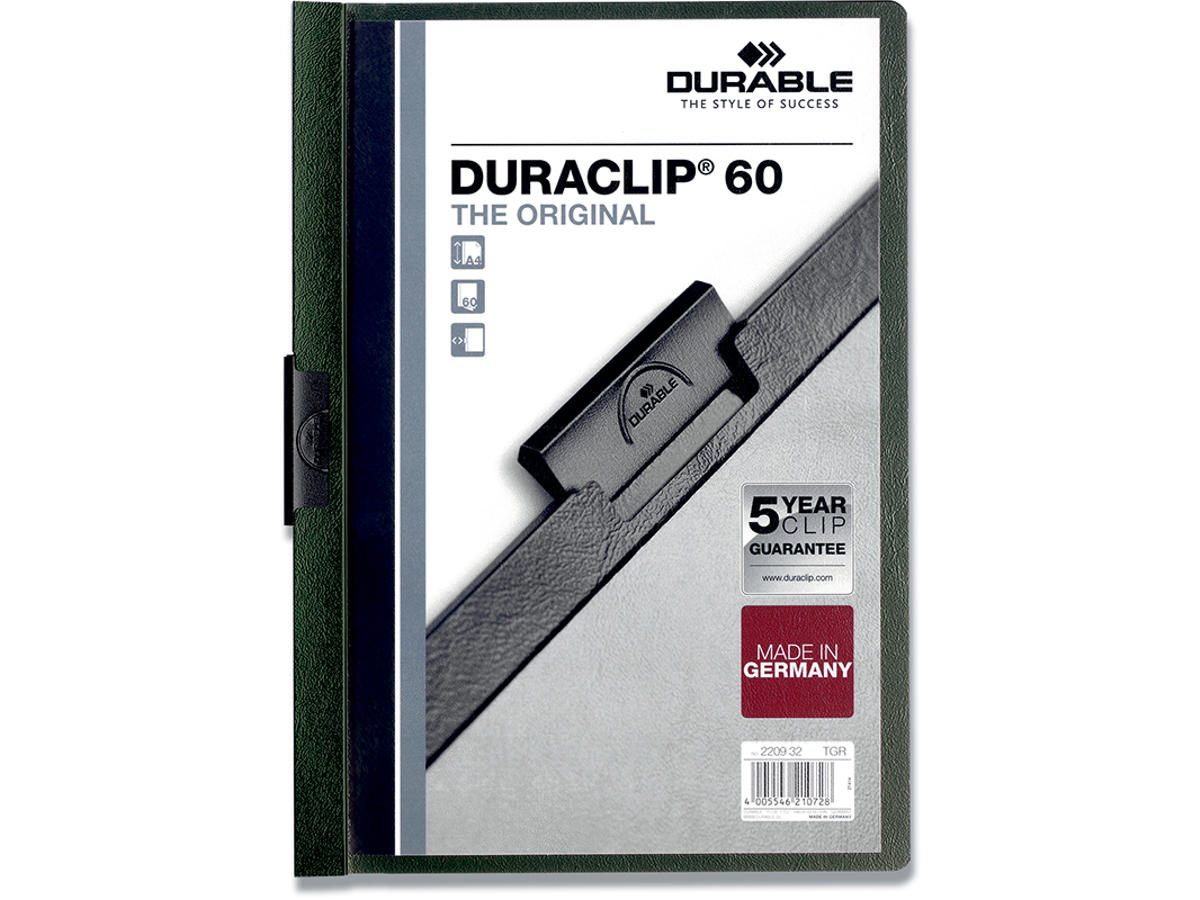 Klemmappe, 60 stk, Mørkegrøn, Transparent forside, Durable DURACLIP 60