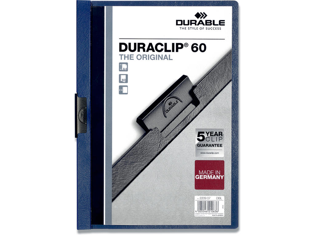 Klemmappe, 60 stk, Mørkeblå, Transparent forside, Durable DURACLIP 60