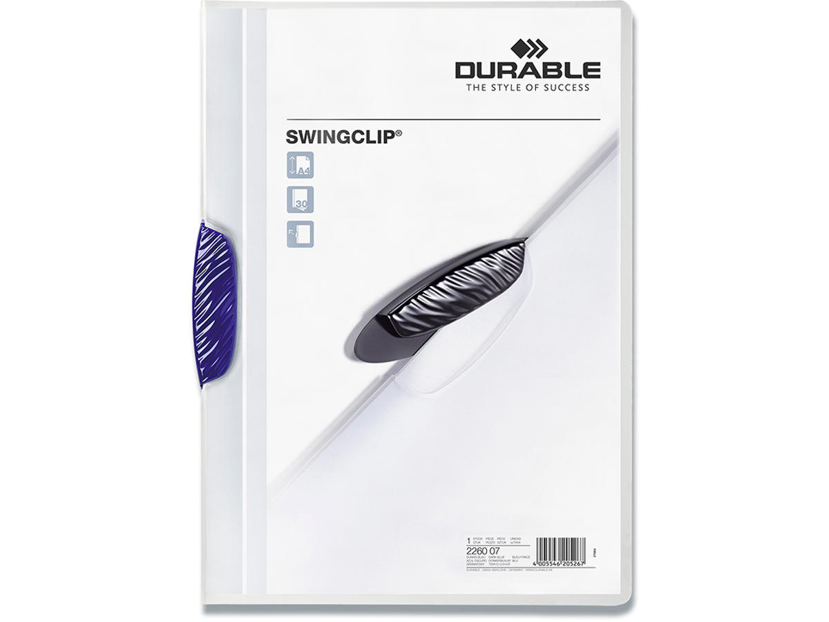 Klemmappe, 30 ark, Transparent med blå clip, Transparent forside, Durable SWINGCLIP 30