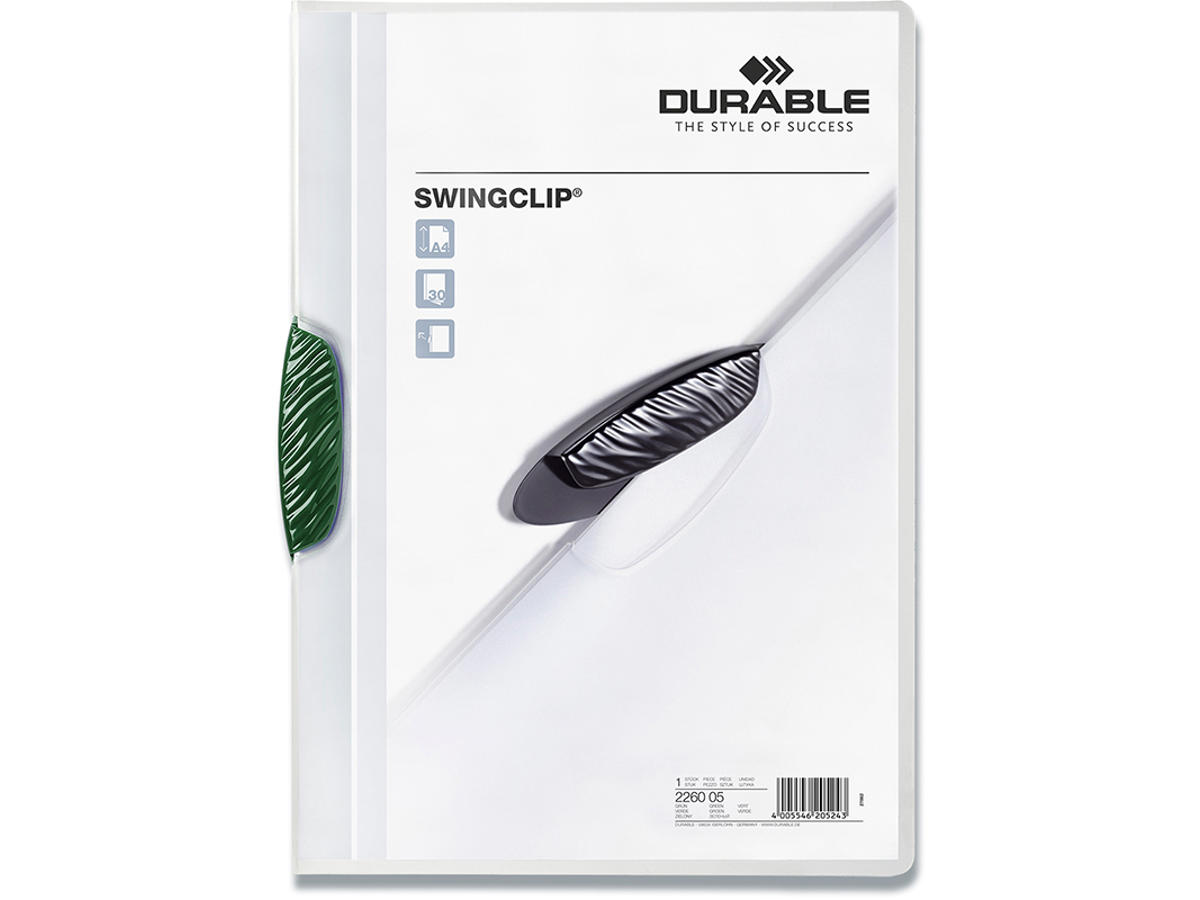 Klemmappe, 30 ark, Transparent med grøn clip, Transparent forside, Durable SWINGCLIP 30