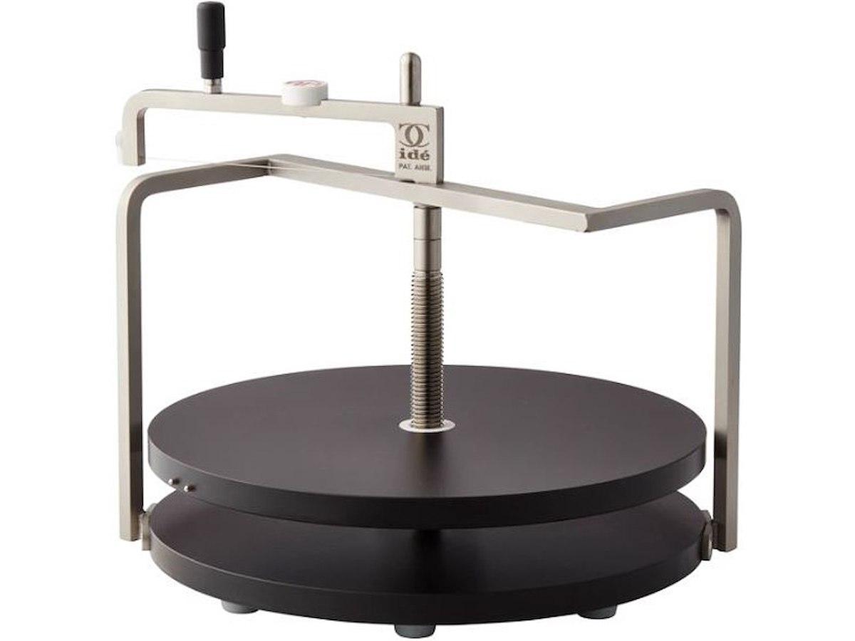 Den klassiske osteskærer til buffet! Produceret i rustfrit stål og laminat med trælook. God til både faste og bløde oste op til 14.5 cm høje og Ø30 cm. Ekstra strenge kan tilkøbes og skiftes nemt. Må ikke i opvaskemaskine men kun rengøres med en fugtig klud.