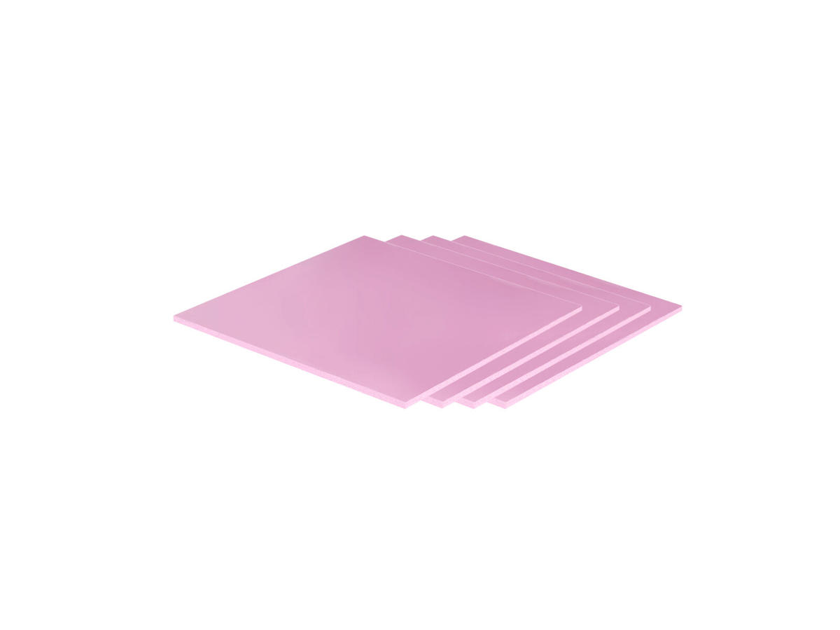 ARCTIC TP-1 (APT2012). Type: Termisk pude, Termisk ledningsevne: 1,2 W/mK, Produktfarve: Lyserød. Bredde: 100 mm, Dybde: 100 mm, Højde: 1 mm. Antal pr. pakke: 4 stk, Pakkebredde: 220 mm, Pakkehøjde: 230 mm