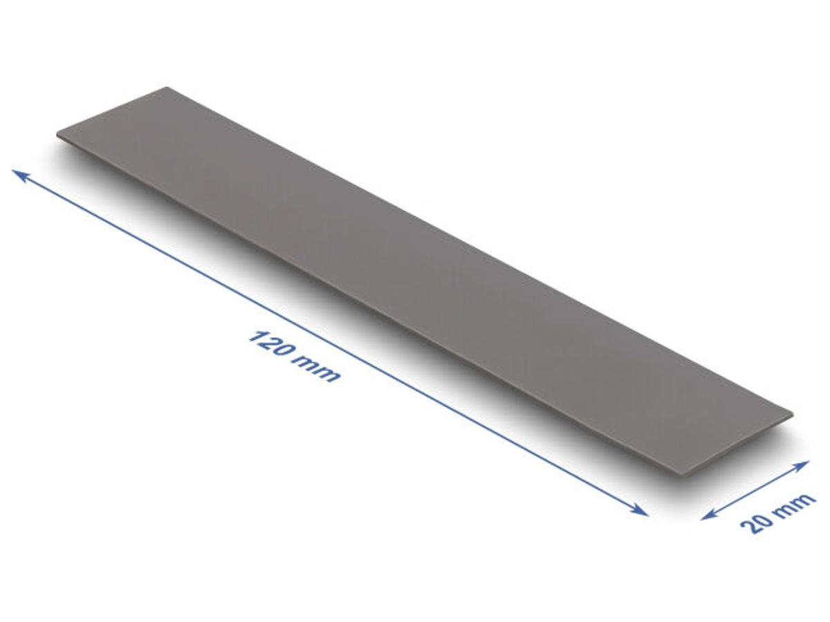 DeLOCK 18475. Type: Termisk pude, Termisk ledningsevne: 3 W/mK, Produktfarve: Grå. Bredde: 20 mm, Dybde: 120 mm, Højde: 0,5 mm. Antal pr. pakke: 1 stk, Pakketype: Polybag. Oprindelsesland: Kina, Taiwan