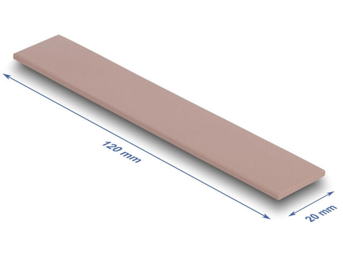 DeLOCK 18483. Type: Termisk pude, Termisk ledningsevne: 3 W/mK, Produktfarve: Lyserød. Bredde: 20 mm, Dybde: 120 mm, Højde: 2 mm. Antal pr. pakke: 1 stk, Pakketype: Polybag. Oprindelsesland: Kina, Taiwan