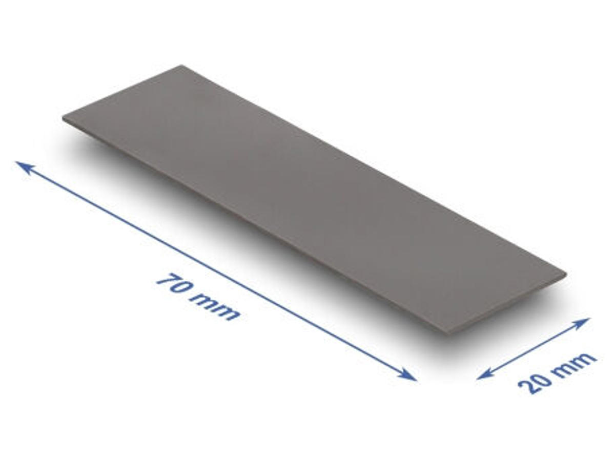 DeLOCK 18403. Type: Termisk pude, Termisk ledningsevne: 3,2 W/mK, Produktfarve: Grå. Bredde: 20 mm, Dybde: 70 mm, Højde: 0,75 mm. Antal pr. pakke: 1 stk, Pakketype: Polybag. Oprindelsesland: Kina, Taiwan