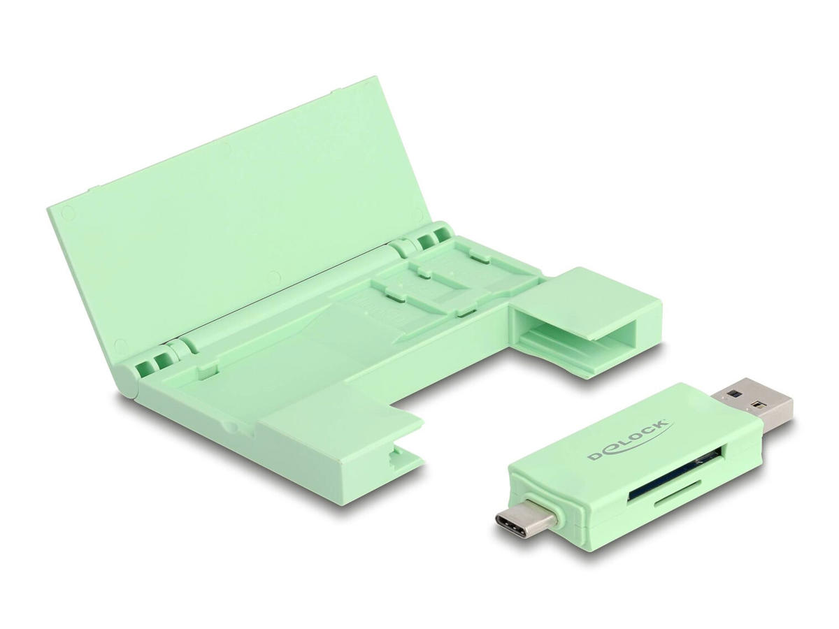 DeLOCK 91015. Kompatible hukommelseskort: MMC, MicroSD (TransFlash), SD, Produktfarve: Mintfarve, Dataoverførselshastighed: 5000 Mbit/s. Grænseflade: USB 3.2 Gen 1 (3.1 Gen 1) Type-A/Type-C. Bredde: 60 mm, Dybde: 85 mm, Højde: 10 mm. Antal pr. pakke: 1 stk, Pakketype: Hængende boks. Understøttede Windows-operativsystemer: Windows 10, Windows 11, Understøttede Mac-operativsystemer: Mac OS X 14.0 Sonoma, Understøttede Linux-operativsystemer: Linux Kernel 6.2, Linux Kernel 6.5