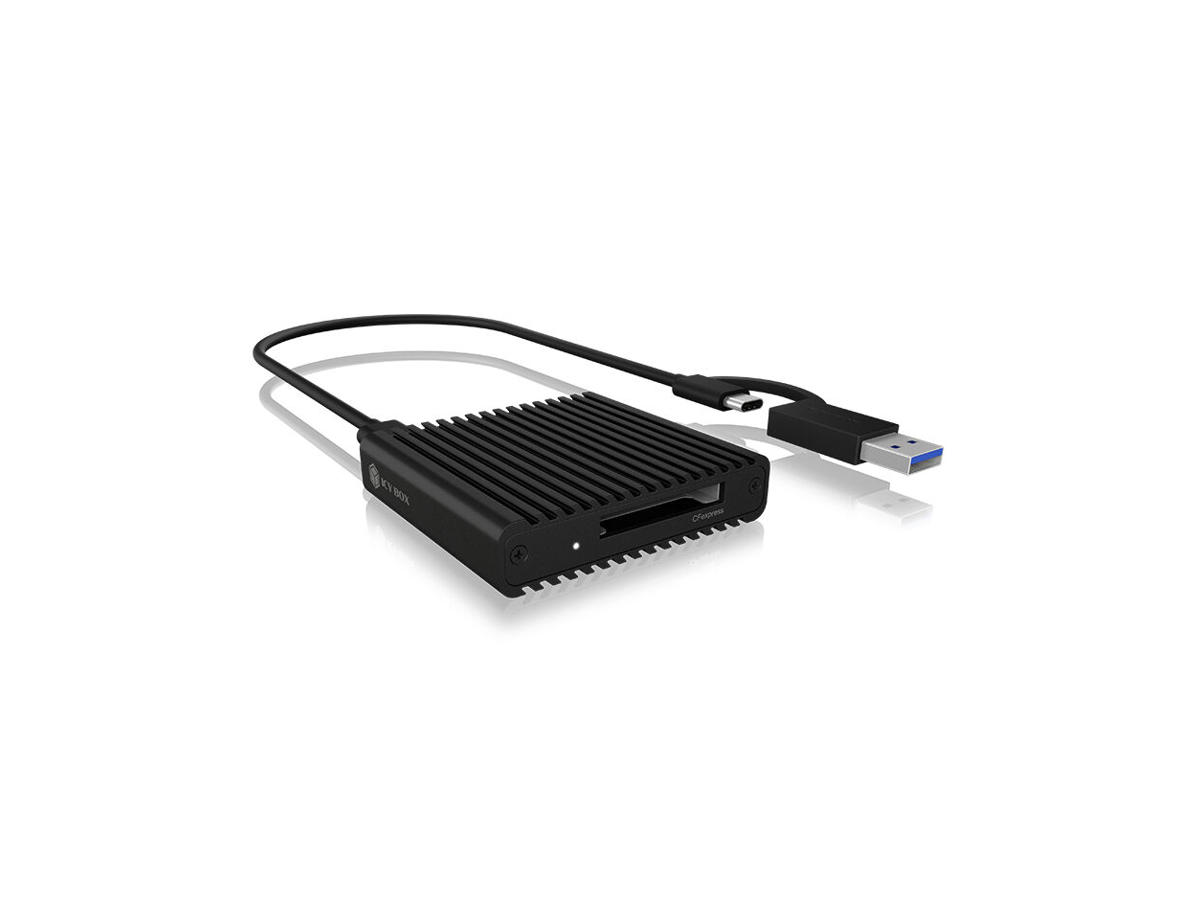 ICY BOX IB-CR404-C31. Kompatible hukommelseskort: CFast 2.0, Produktfarve: Sort, Dataoverførselshastighed: 10000 Mbit/s. Bredde: 64 mm, Dybde: 59 mm, Højde: 15 mm. Antal pr. pakke: 1 stk, Pakkebredde: 27 mm, Pakkedybde: 105 mm. Kompatible operativsystemer: Windows, macOS, ChromeOS. Produkter pr. hovedkasse (udvendigt): 40 stk
